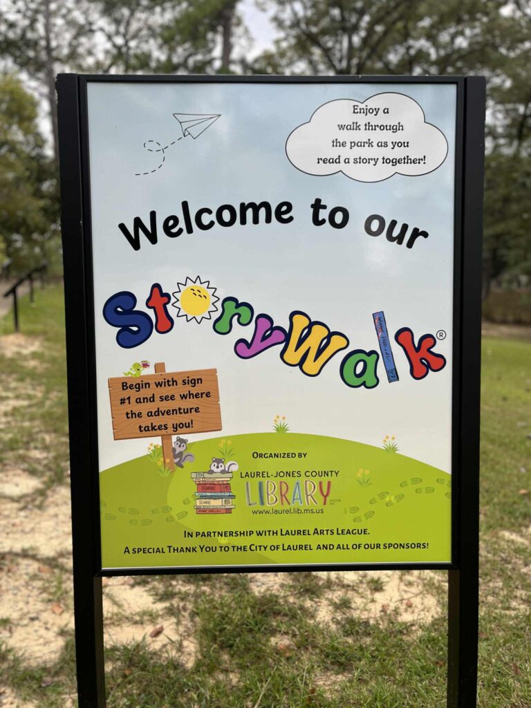 We’re thrilled to announce the Laurel-Jones County Library’s Storywalk® Project—an innovative way for families to enjoy the outdoors while reading a great story together! The Storywalk® will feature pages of children’s books displayed along the walking trail in beautiful Mason Park, Laurel, MS.
